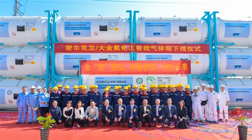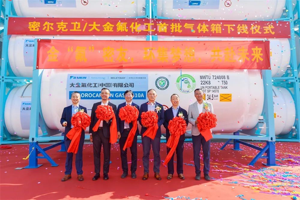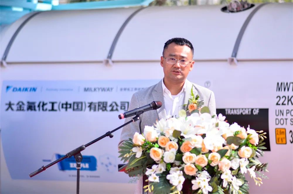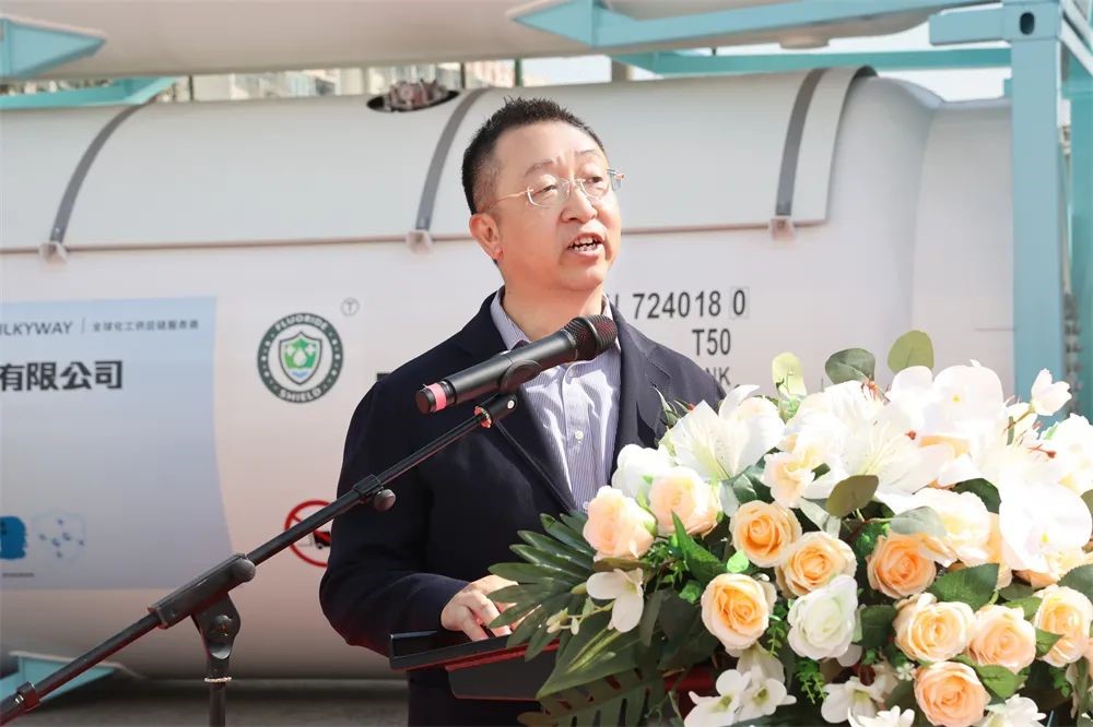 上午10点58分,,,,,下线仪式准时最先,,,,,6008集团季国祥总司理代表制造商致辞,,,,,他体现,,,,,密尔克卫、大金氟化工、6008集团划分作为化工仓储物流、细腻化工、能源化工物流装备领域的佼佼者,,,,,不忘各自肩负的使命和责任,,,,,敬畏情形,,,,,敬畏生命,,,,,在绿色生长、低碳生长、可一连生长方面取得了令人自满的效果,,,,,作出了敢想敢为的楷模。。。。。本次下线的气体箱产品接纳了立异的新质料、新工艺,,,,,在筒体和框架接纳了大金氟化工新一代4F型高固体分、低VOC环保氟碳树脂油漆,,,,,具有超长耐候、优良的防腐性能;;;;;;同时,,,,,罐内也率先接纳了氟盾水性漆,,,,,与古板的镀锌工艺相比,,,,,不但兼容性能更好,,,,,并且越发绿色环保,,,,,也便于日后维护。。。。。这些新手艺的应用淋漓尽致地体现了三家企业在追求绿色生长、低碳生长上相同的理念和作出的起劲,,,,,6008集团很是幸运未来继续与密尔克卫、大金氟化工一起生长,,,,,成为全球化工物流绿色生长、高质量生长的提倡者和立异者。。。。。